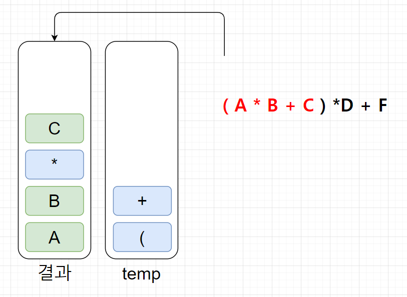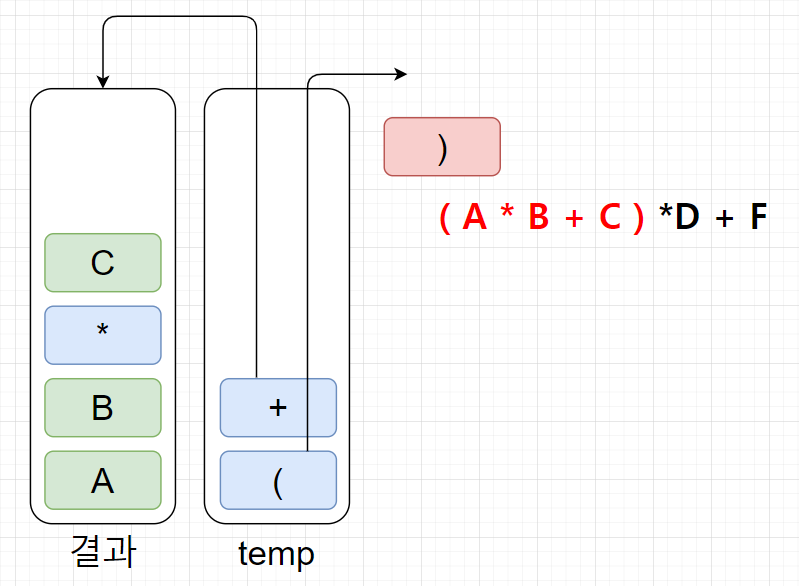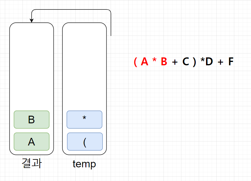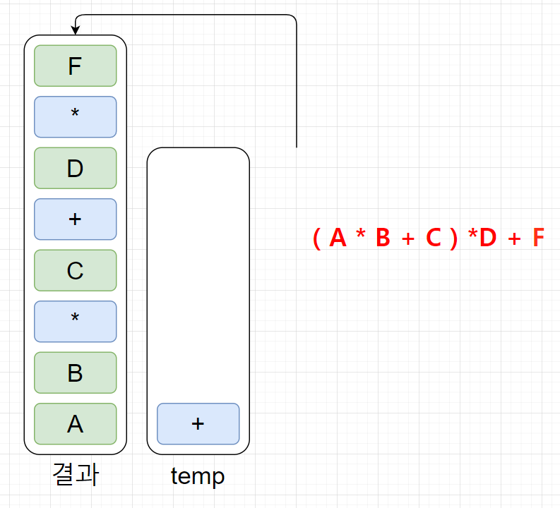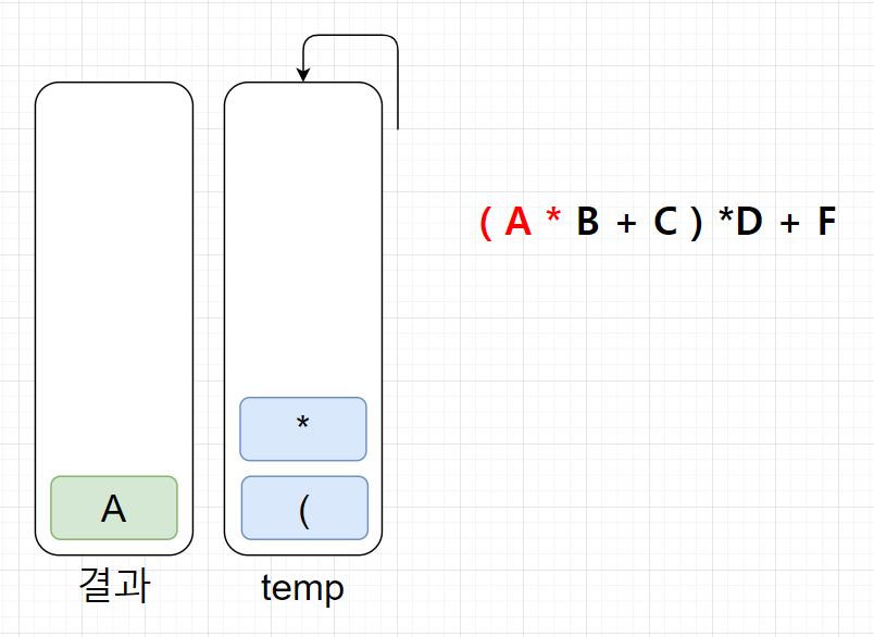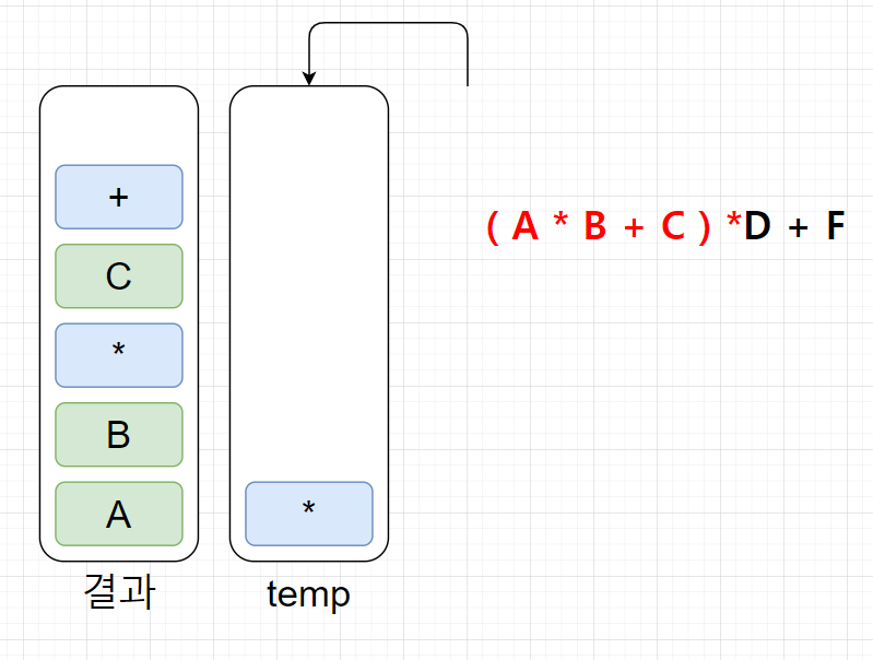 (temp스택에서 무조건 연산자 우선순위가 높은게 위에 있어야한다!)