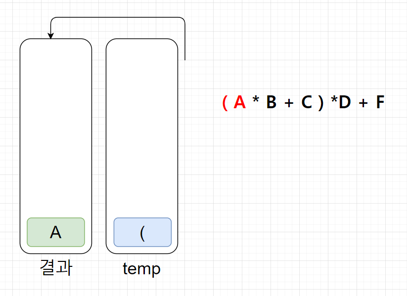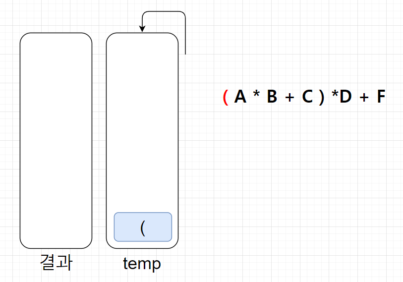 2. 괄호 ( 는 temp에 넣는다.