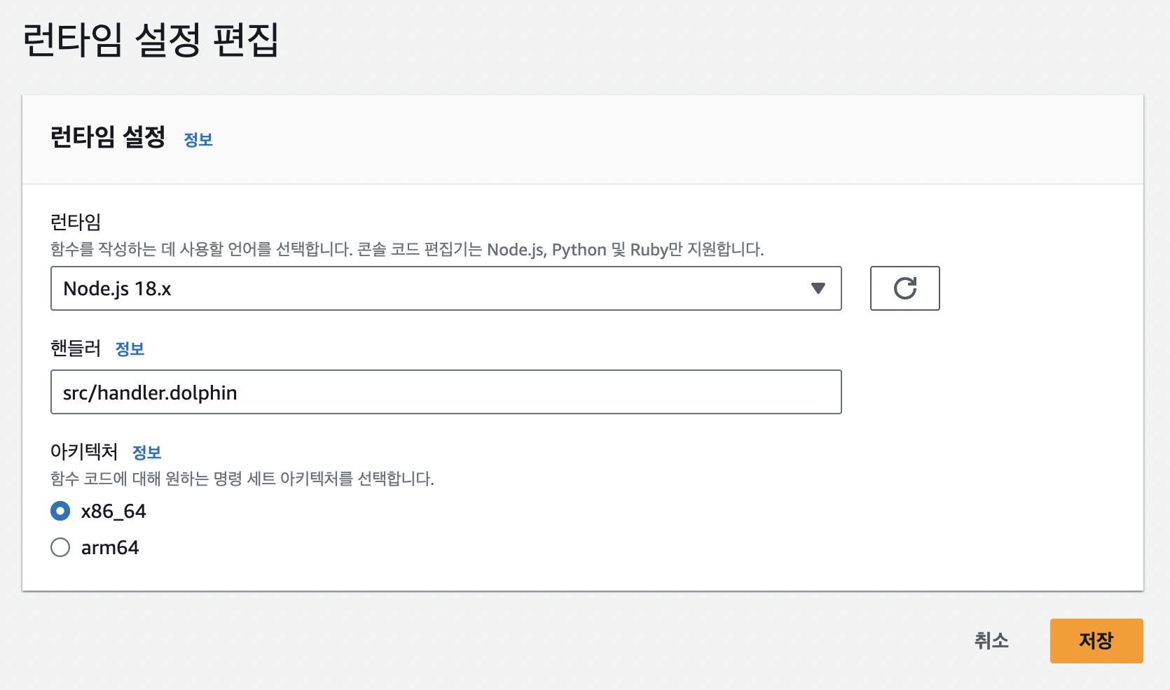 그래서 람다 콘솔에서 실행환경을 최신 버전으로 변경하고, 다시 업데이트 롤백 계속을 하니 정상으로 돌아왔고, serverless.yml 파일을 수정해 다시 배포할 수 있었다.