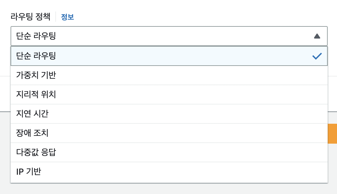 Route53에서 레코드를 생성할때, 라우팅 정책을 설정할 수 있다.