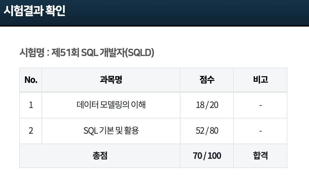 아무래도 요즘엔 왠만하면 ORM을 사용하고 간단한 쿼리만 사용해서 Nested Loop Join이 뭔지, Sort Merge Join 이 뭔지에 대해 깊이 생각해보지 않았었는데 이번 기회를 통해 내가 어떻게 해야 성능상 이득을 볼 수 있는지, 이 모델에는 어떻게 인덱스를 걸어야 유리한지에 대해 다시 한 번 생각하게 되었고, 집 - 회사만 반복하는 생활에서 새로운 도전을 했다는 것 자체만으로도 뿌듯했다. 합격을 해서 더욱 좋았다. SQLP까지는 도전할 계획은 없지만 이번에 공부한 내용은 앞으로 DB 공부를 하는데 단단한 기반이 될거란 생각이 들었다.