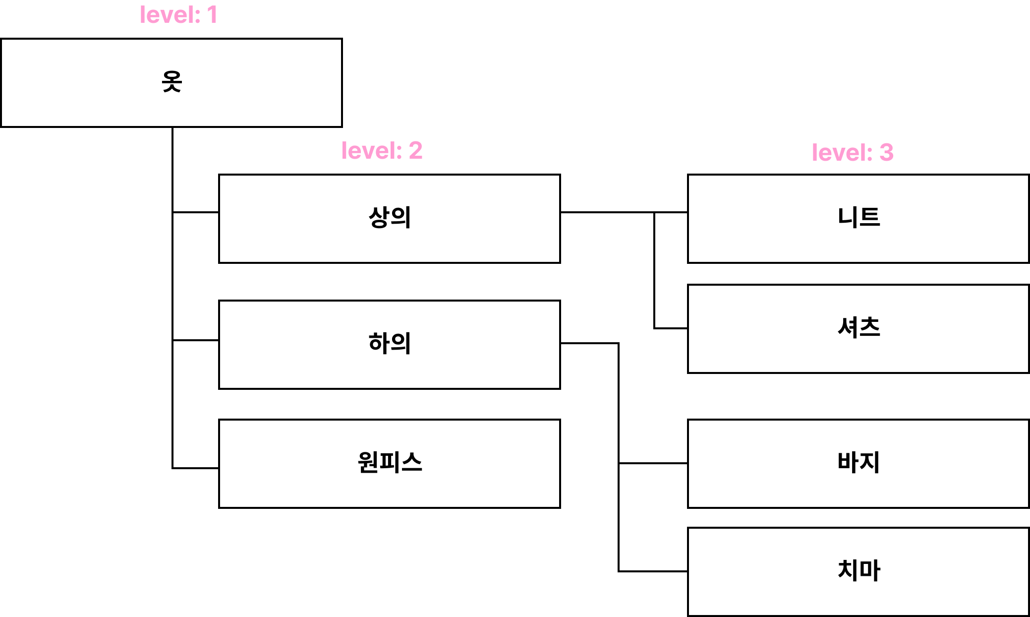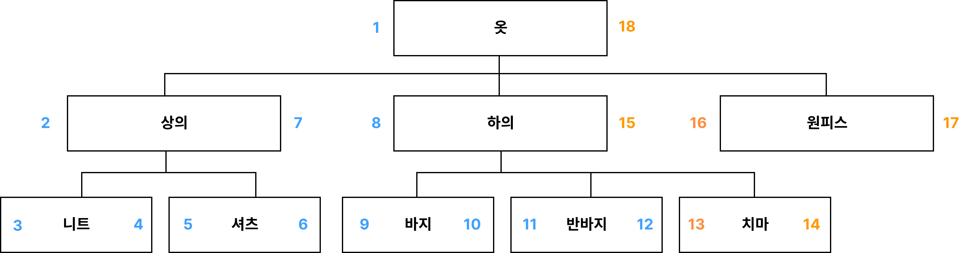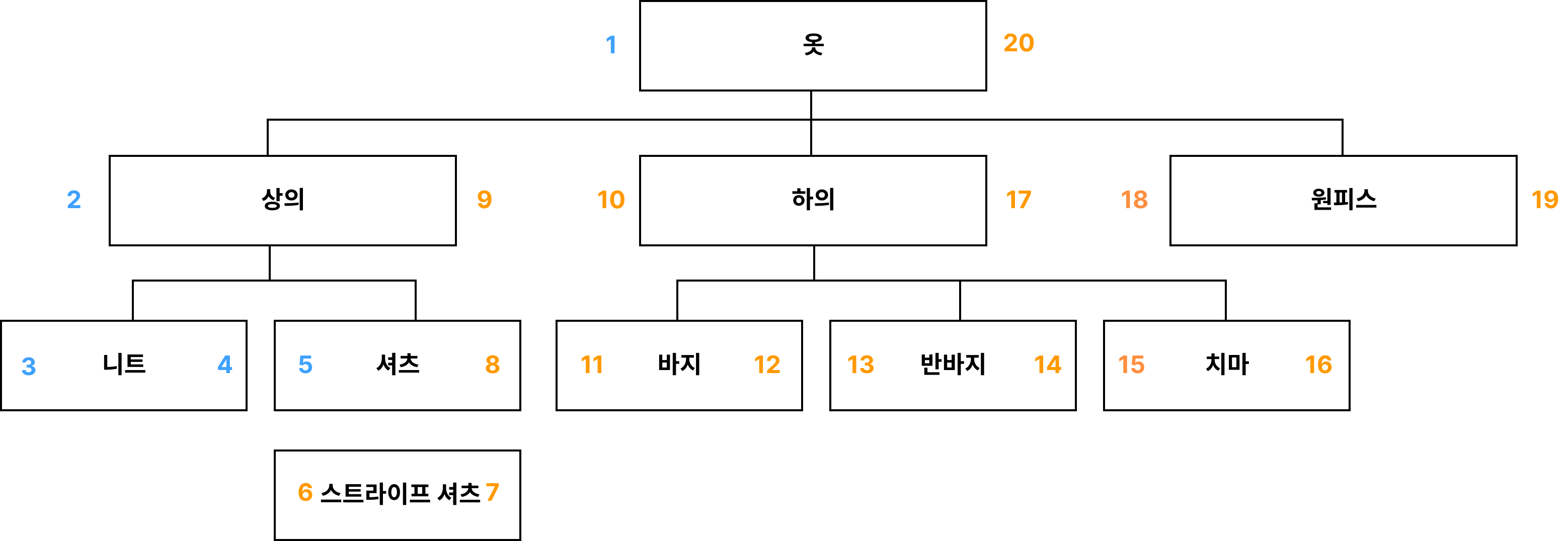 니트의 계층 구조는 옷 > 상의 > 니트 이렇게 표현할 수 있을것이다.