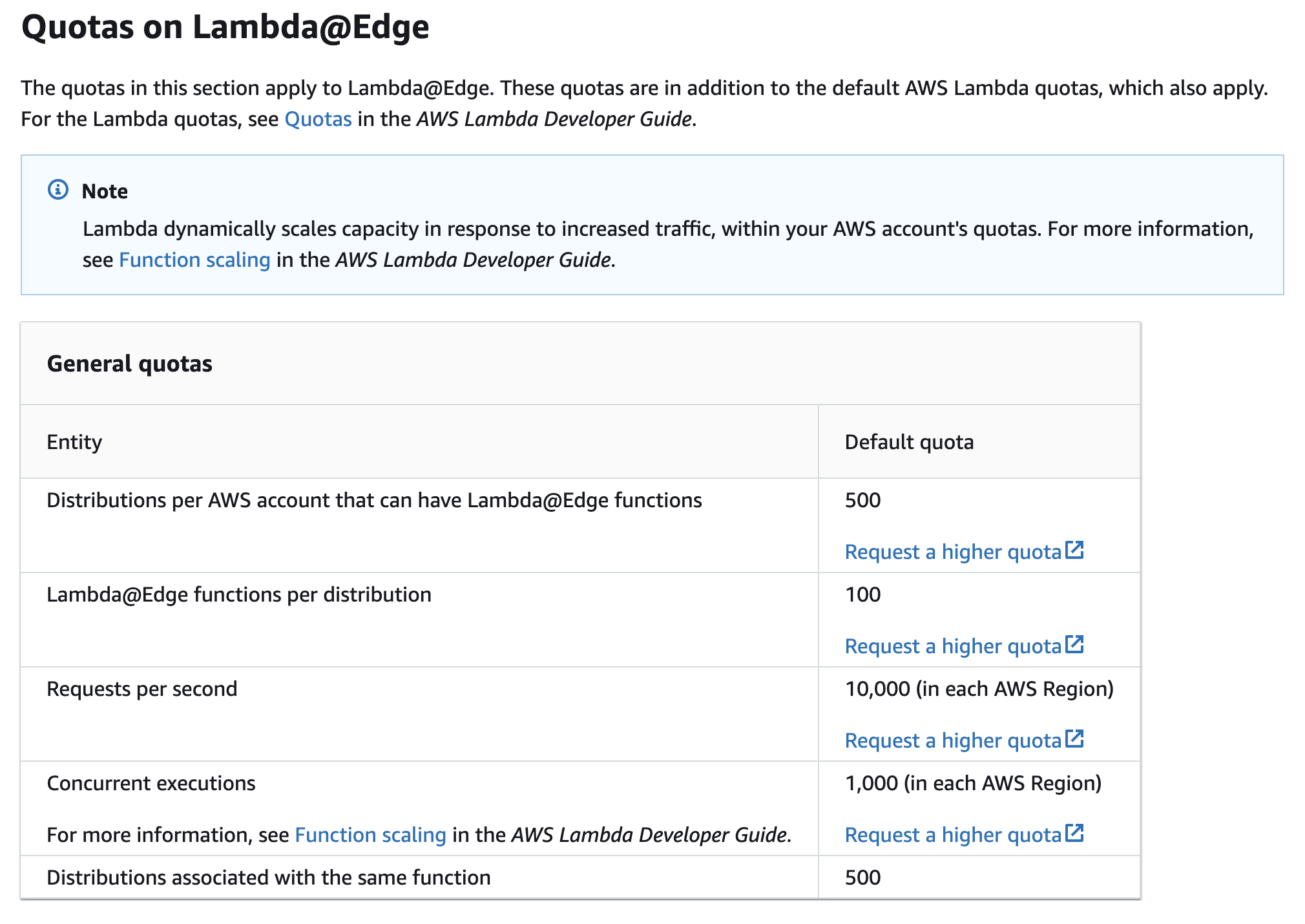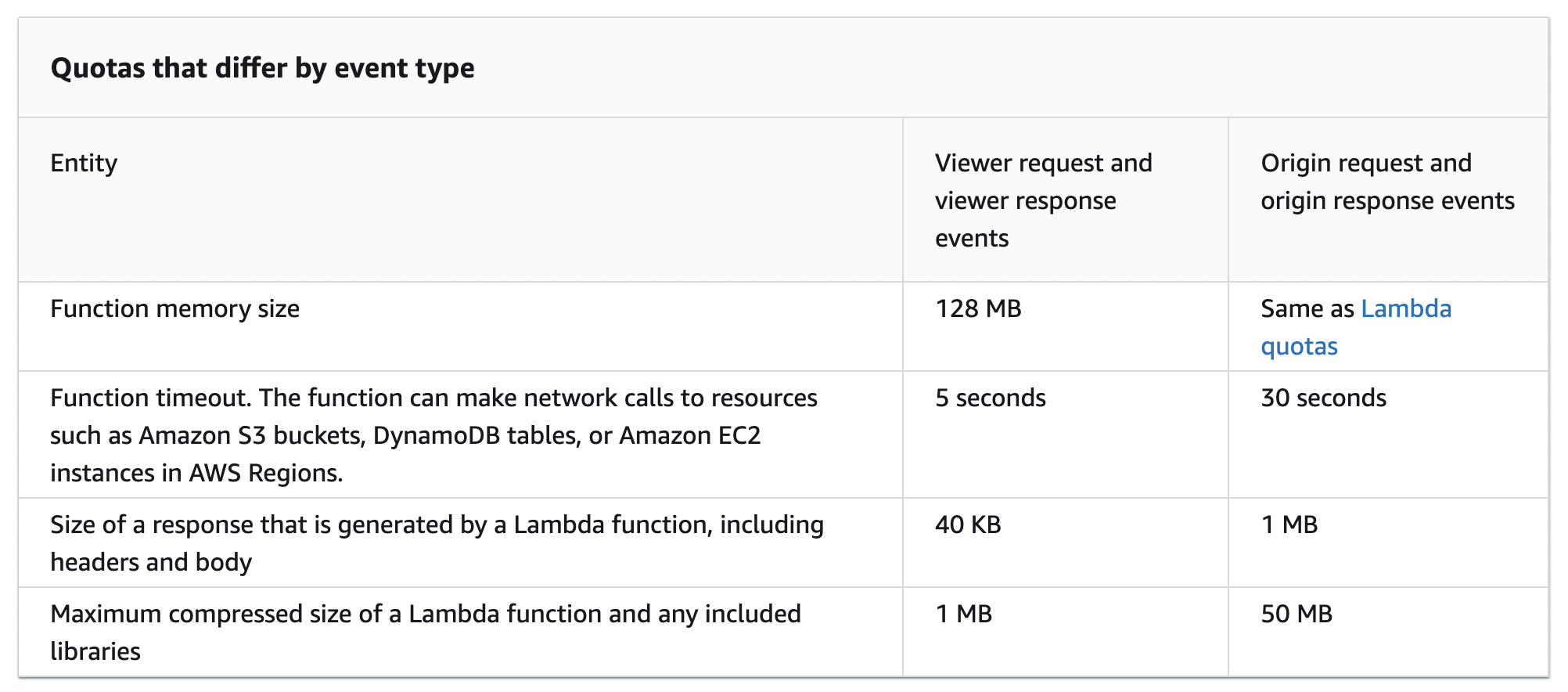 이것저것 찾아보니 Lambda@Edge 제한에 대한 문서를 찾아볼 수 있었다.