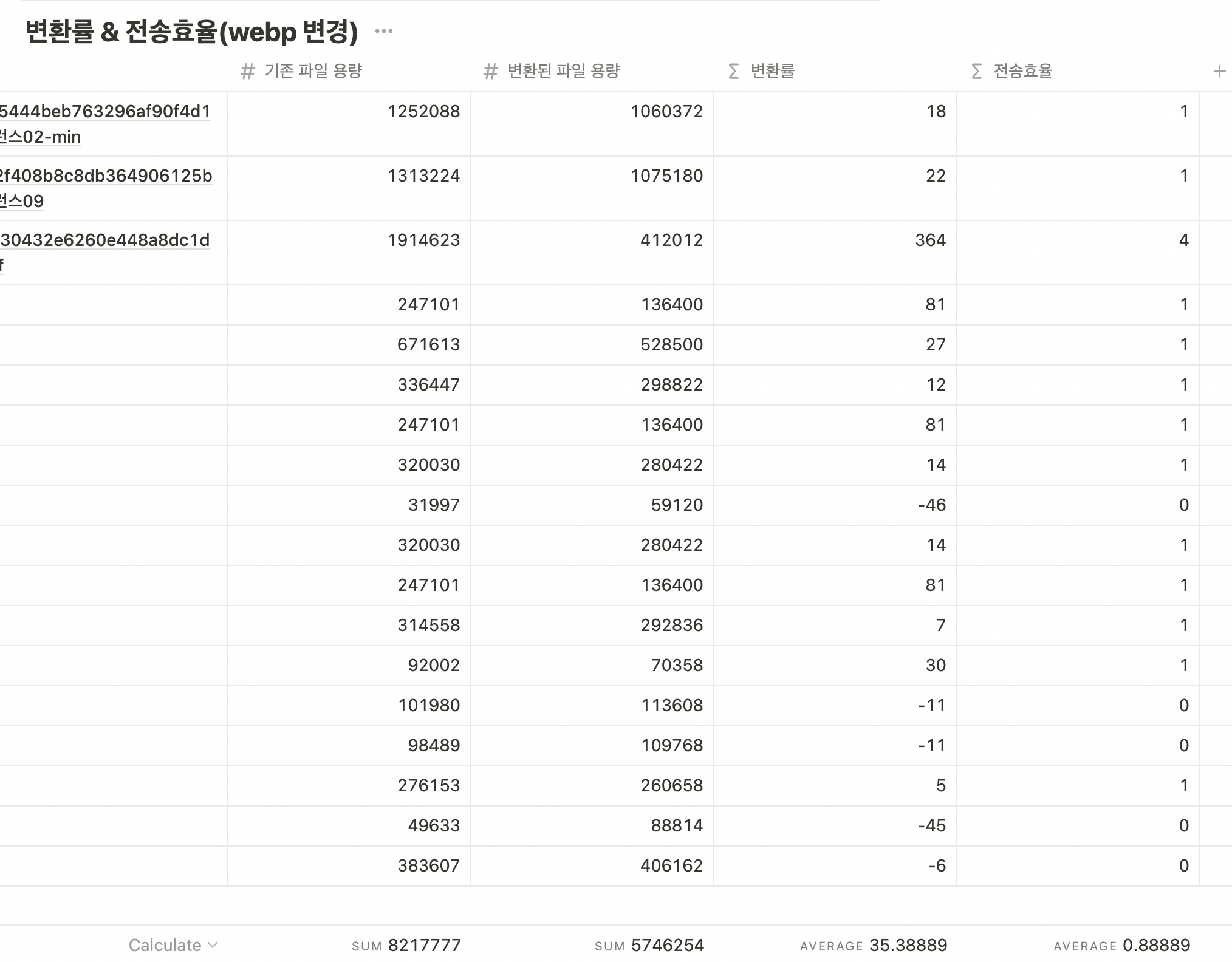 - 실제로 스크립트로 테스트 해보니 사이즈가 큰 이미지일수록 드라마틱한 변환률을 보이는걸 확인할 수 있었다.