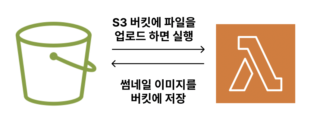 S3 버킷에 이미지 업로드를 트리거로 람다 함수를 실행시켜 프로세싱된 이미지를 S3에 저장하는 방식이다.